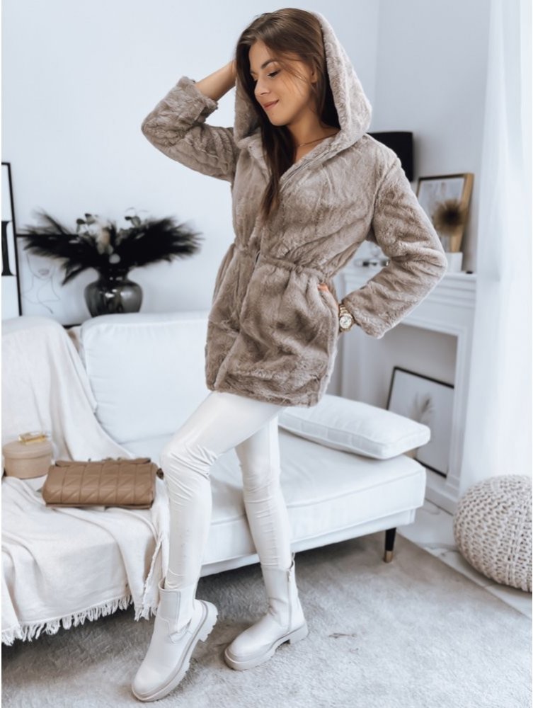 Dámská bunda KALIA Úžasný, kožich, který se skvěle hodí do chladných dnů. Model má v pase šňůrku, díky které krásně zvýrazní vaši postavu. Uvnitř je podšívka. Kapuce není odnímatelná. Barva béžová.Složení: 100% polyester.Rozměry modelu: Boky: 85 cm Pas: 68 cm Prsa: 87 cm Výška: 172 cm Velikost bot: 39 Modelka nosí velikost S