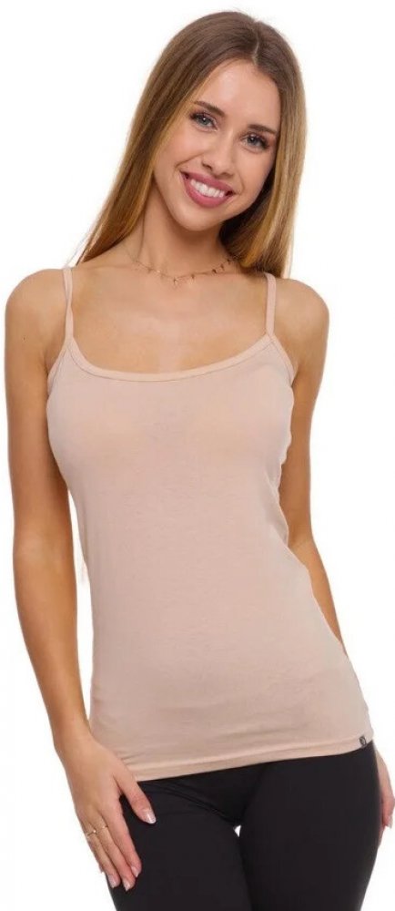 Jednobarevné hladké úpletové tílko (košilka) určené pro dámy a velké dívky, má tenká ramínka, je vhodné k nošení jako spodní prádlo nebo i jako svrchní tílko, nebo pod sako, svetřík. Je vyrobeno z bavlněného elastického úpletu, příjemné na dotek.