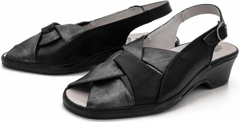 Dámská kožená obuv, vhodná pro širší chodidlo. Obuv je nazouvací s regulovatelným páskem kolem paty.