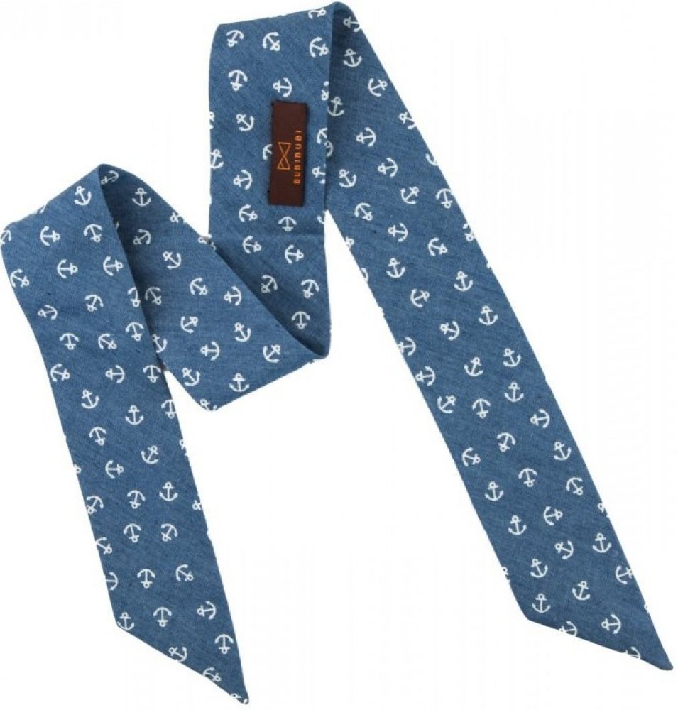 Modrá dámská mašle s kotvami je univerzální doplněk, který ozvláštní každý outfit. Ze stejné látky máme v kolekci i pánské kravaty a motýlky, takže doladit se s partnerem bude hračka. Mašli můžete uvázat na spoustu způsobů: kolem krku jako šátek, motýlka nebo kravatu do vlasů jako čelenku nebo mašli na ruku na kabelku, tašku Velikost mašle: 5 x 90 cm Materiál: 100% bavlna Péče: jemně vyprat v ruce...