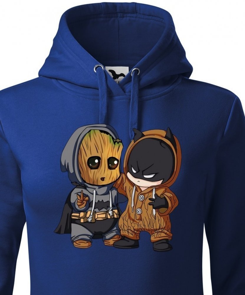 Mikina s potiskem Batman a Groot bude skvělé pro každú fanynku Marvelovek. Mezi oblíbená Marvel mikiny jistě svou nápaditostí zapadne. Mikina bude skvělé jako dárek k Vánocům i narozeninám.