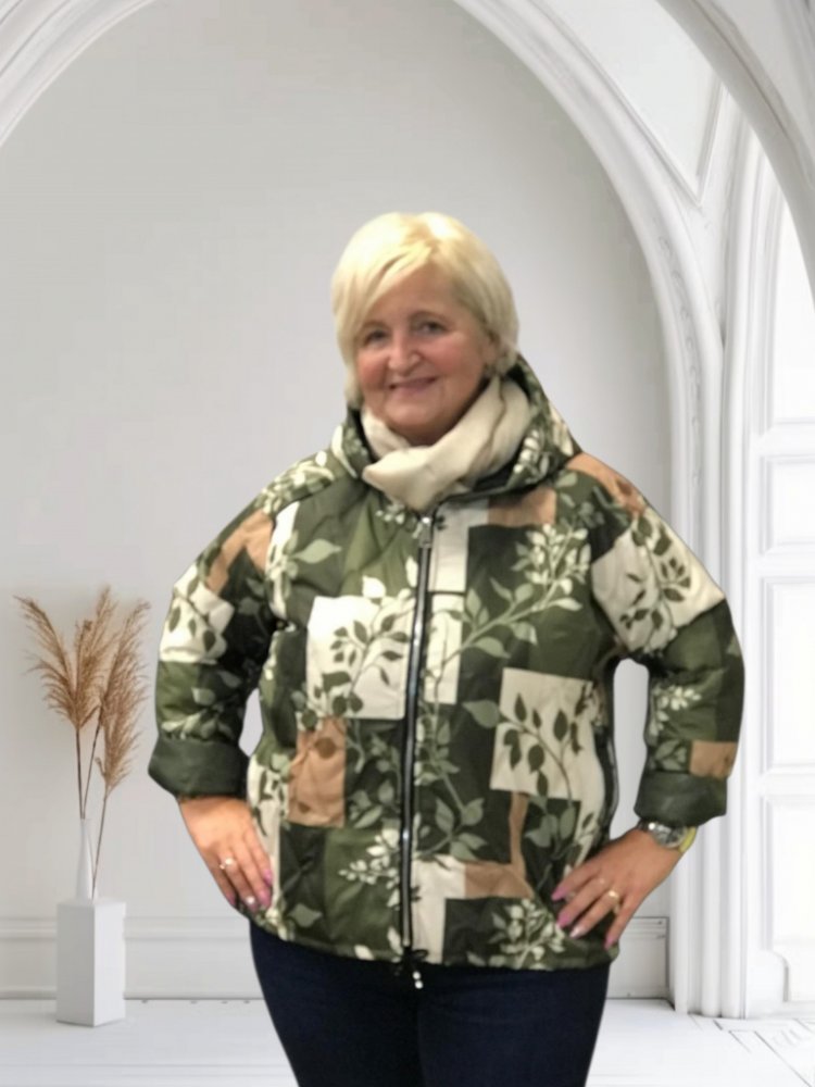 Tato bunda je ideální volbou pro chladné podzimní dny. Je vybavena praktickou kapucí a prostornými bočními kapsami pro vaše pohodlí. Díky šňůrce ve spodní části si můžete bundu dokonale přizpůsobit své postavě a zabránit profouknutí. Jedinečný patchworkový vzor s přírodními motivy dodává bundě originální a módní vzhled, ve kterém zaručeně zazáříte.