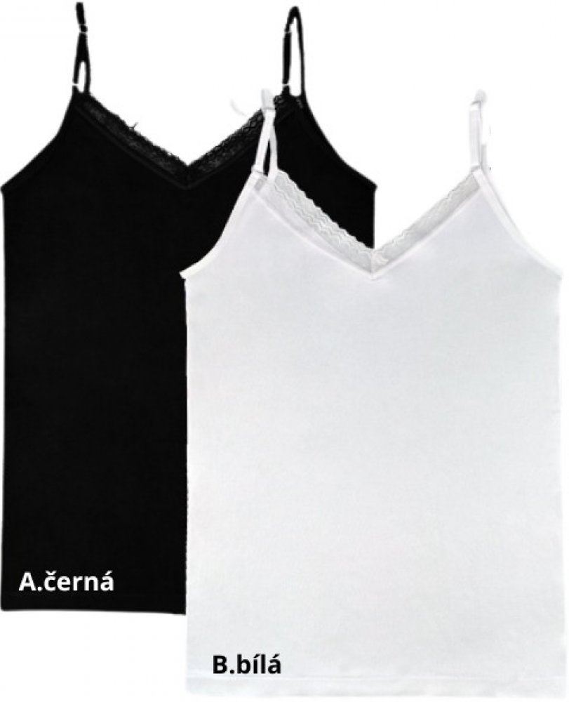 Dámská košilka s úzkými ramínky, vpředu krajka, boky jsou bezešvé