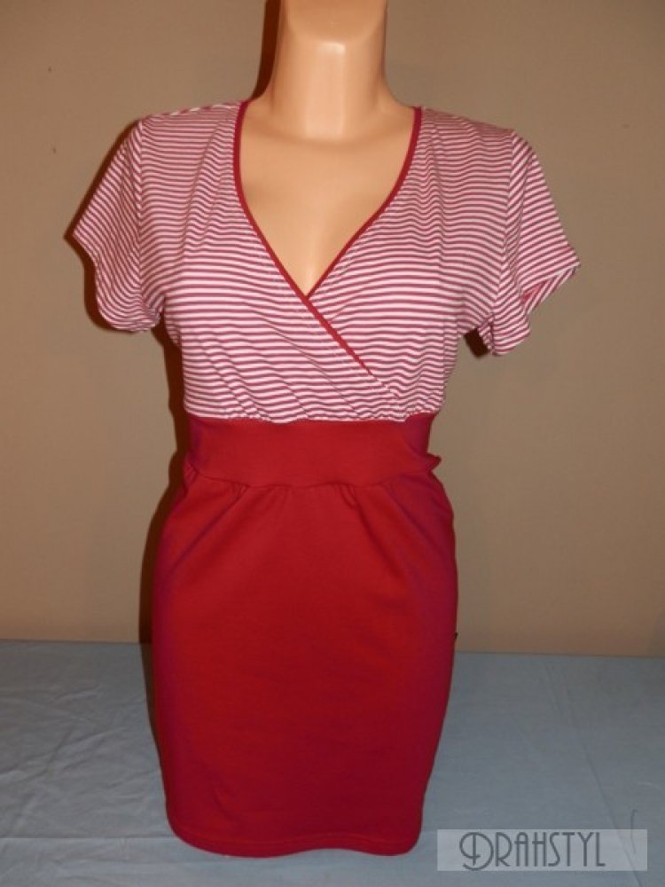 Delší tričko s červeným pruhovaným živůtkem, v pase všito do nápletu, bavlněný úplet.