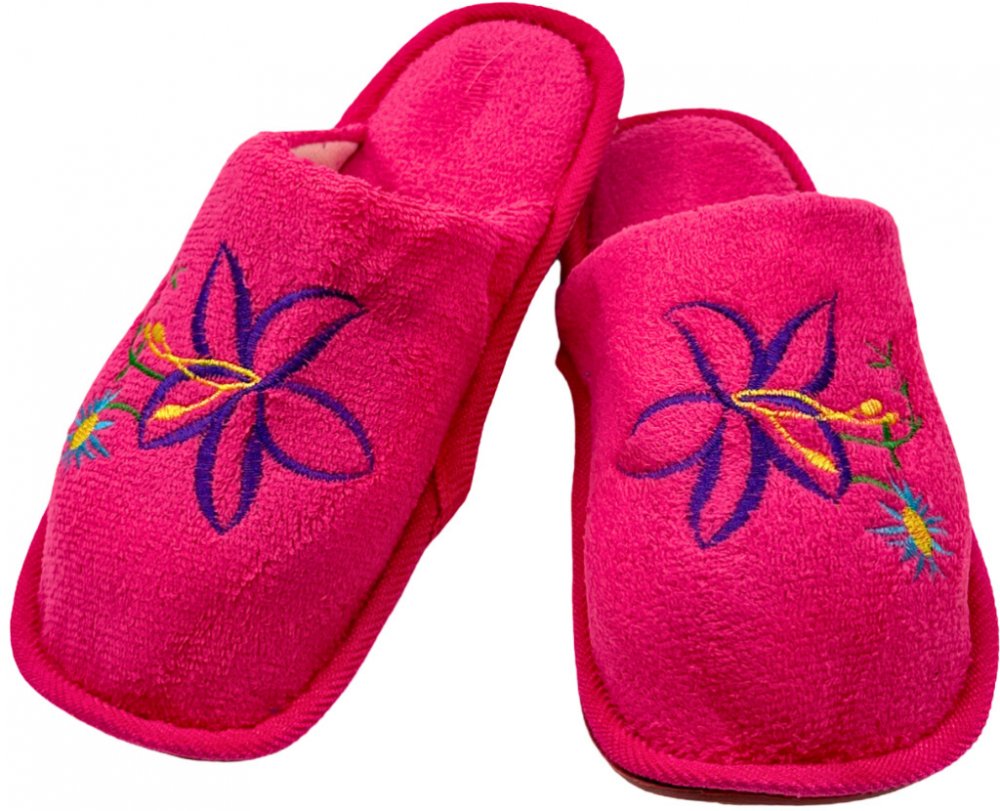 Dámské měkké domácí bačkory z froté s květinovou výšivkou