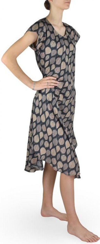 Dlouhé letní šaty s jedinečnými vzory. Šaty mají krátký rukáv a jsou stiženy do volného "A" střihu. Rozměry: délka: 110 cm, šířka přes prsa: 49 cm, délka průramku: 25 cm, pas: 64 cm.Materiál: 100% viskózaTextil, který nosíte, položte volně na stůl či jinou rovnou plochu. Změřte v místech dle popisu u zboží. Vypsané rozměry jsou rozměry daného kusu zboží.