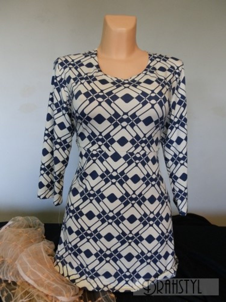 Džínová modř na ekri podkladě, úplet velikost XXXL délka 72 u velikosti xxxxxl je délka 78cm- nelze zaslat jinak jde o ušité halenky.