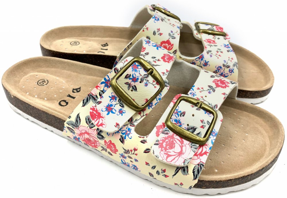 Dámské korkové biopantofle béžové s květy
