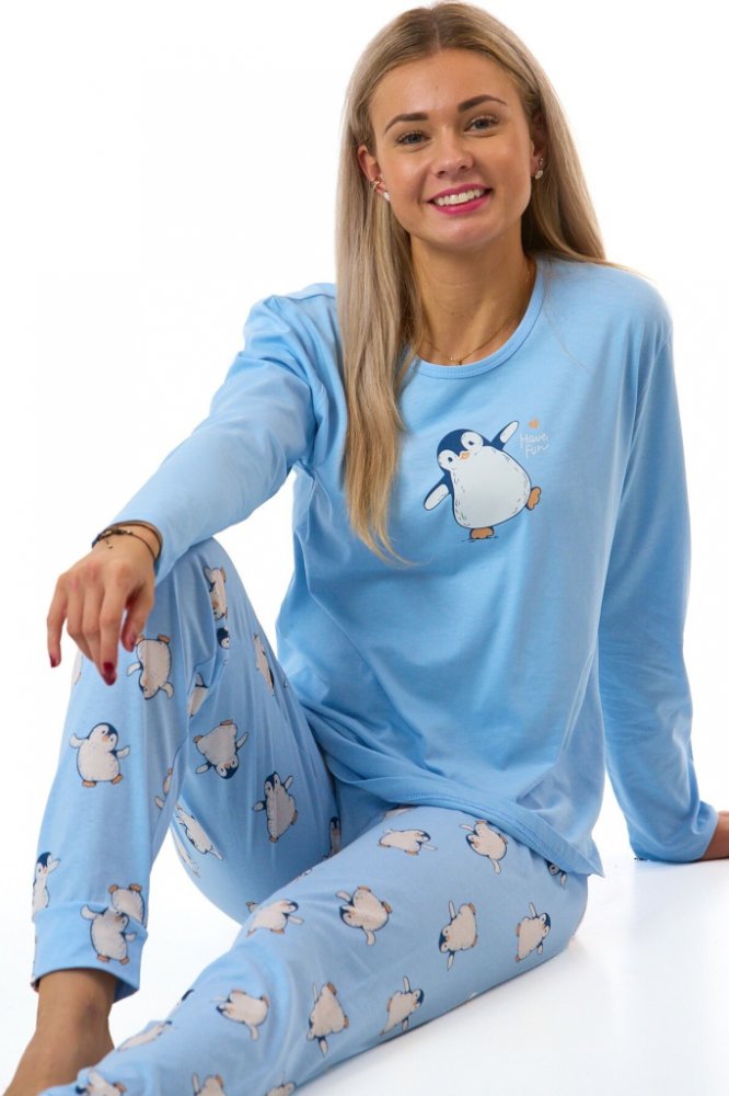 Dámské ledově modré zimní pyžamo s tučňákem 1B2287 modrá M