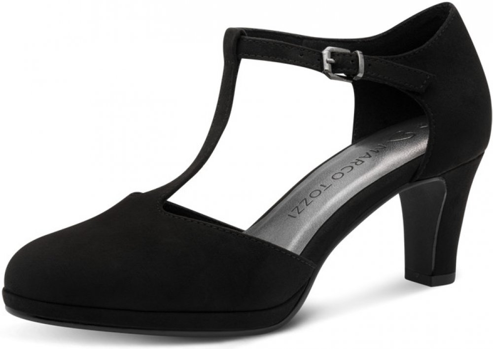 Dámské lodičky Marco Tozzi na vysokém podpatku s páskem okolo nohy Jsou vhodné do městské zástavby i do společnosti.