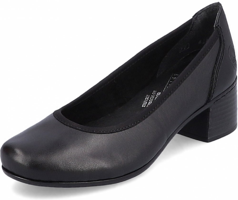 Dámské lodičky značky Rieker. Model s kulatou přední částí, vyměkčenou stélkou a stabilním nízkým podpatkem - prostě vše pro příjemnou a pohodlnou chůzi. Svršek je vyroben z pravé hladké kůže. Kůží je také potažena vyměkčená stélka. Podešev se systémem Antistess - flexibilní podešev tlumící rázy při chůzi.