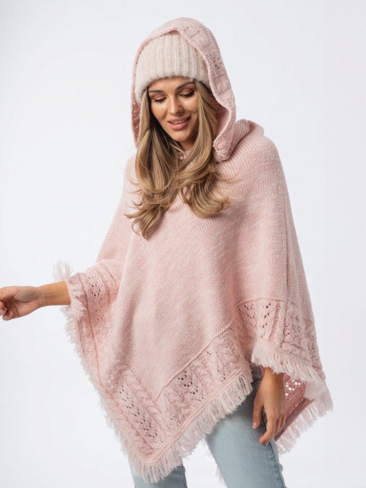 MATERIÁL: 100 % akryl VELIKOST: UNI (vhodná pro S, M a L) BARVA: powder pink / světle růžová Moderní dámské pončo bez rukávů vyrobené z teplého pleteného materiálu ve stylové světle růžové barvě. Pončo je doplněné moderním střihem, který je zakončený ve spodní části střapci. Trendy střapce jsou doplněny i na masivní kapuci, která je stylově promyšlená do posledního detailu. Pončo je vhodné na chladnější období. Materiál je příjemně teplý a měkký na dotek. Neškrábe a nežehlí se. Vhodné pro velikosti od S až po XL. Pončo je vhodné i pro větší velikosti nebo těhotné ženy, protože má volný oversize střih. Skvěle ho využijete v chladném období. Jednoduše ho sladíte s džínami, legínami, kozačkami nebo teniskami.