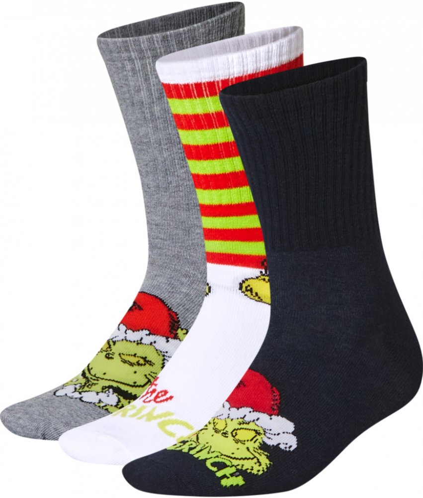 Dámské / Pánské ponožky Grinch, 3 páry Vlastnosti Obsahují bavlnu Pro ženy i muže Skvěle sedí a drží tvar díky značce Lycra ® 3 páry Vlastnosti produktu ;} Barva: šedá/bílá/zelená; červená/bílá/šedá; navy modrá / bílá / šedá; zelená/bílá/červená Vzor: částečně pruhované Detail: s bavlnou Více kusů v balení: 3 páry Materiál: šedá/bílá/zelená: šedá: 64 % bavlna, 33 % polyamid, 3 % elastan (Lycra ® )...