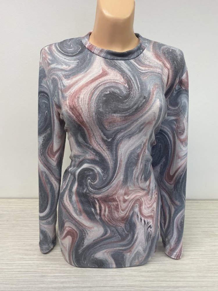 Světlý šedo růžový pulovr v rovném i áčkovém střihu, doporučuji.Dlouhý i krátký.