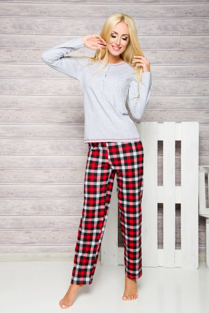Dámské pyžamo s károvanými kalhotami Nati Šedá červená