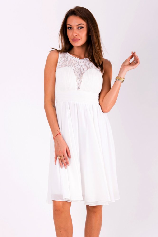 Dámské společenské šaty Louise bez rukávů s krajkou bílá