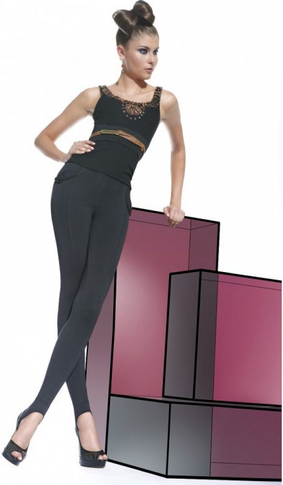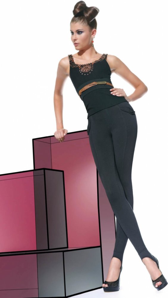 Dámské luxusní dlouhé legíny vyrobené z příjemného elastického materiálu. Legíny mají na přední straně ozdobné kapsičky, na zadní straně je imitace kapes. Spodní čát legín je natažená na chodidlo pomocí gumiček. Legíny jsou velmi pohodlné a perfektně modelují postavu..