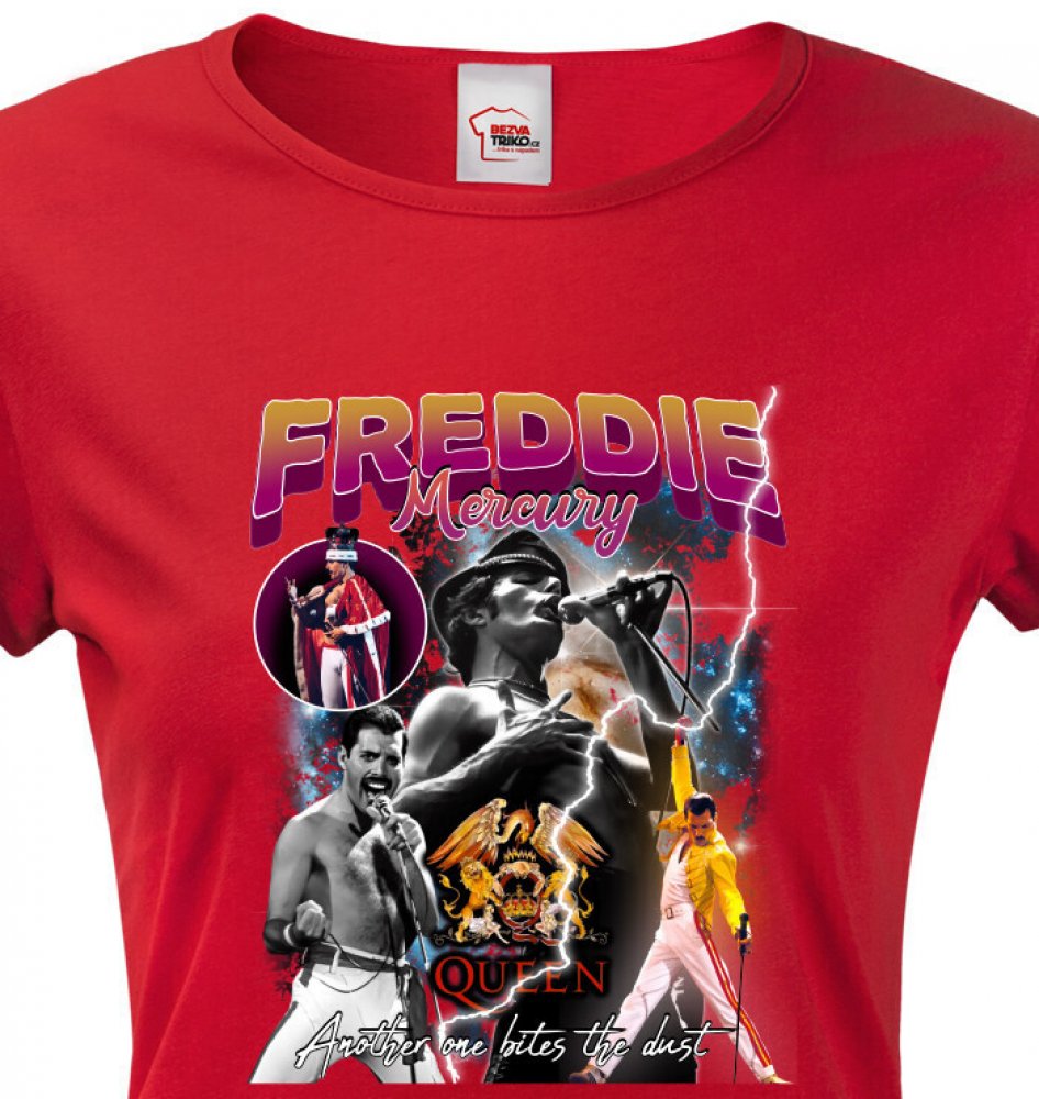 Hledáte dámské tričko s potiskem slavného britského zpěváka a skladatele? Tak pak jste tady správně. Dámské triko s potiskem Freddie Mercury si zamilujete na první pohled. Freddie Mercury je považován za jednoho z nejvýznamnějších zpěváků v historii. Pokud jste fanouškem tohoto slavného zpěváka, pak toto triko vám zaručeně nesmí chybět v šatníku. Skvělé tričko na narozeniny nebo Vánoce.