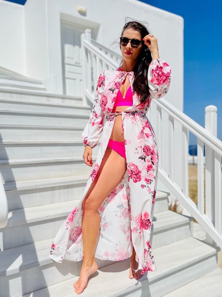 VELIKOST: UNI (vhodná na S, M, L) VÝROBCE: VSB Šité na SLOVENSKU s láskou. ♥ HORKÁ NOVINKA! Dámské kimono v krásném designu s potiskem letních květin v růžové barvě. Kimono je vyrobeno z příjemného vzdušného materiálu, který je lehký a měkký. Hodí se k plavkám jako přehoz, ale také jako doplněk k letnímu outfitu. Kimono lze uvázat kolem krku a pasu. Ještě nemáte vyřešený letní outfit? S kimonem VIVIEN zaručeně všude zazáříš! MODELKA MÁ NA SOBĚ PLAVKY VSB TENERIFE V NEONOVĚ-RŮŽOVÉ BARVĚ.