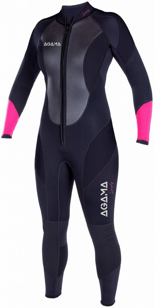 Dámský neopren má švy šité a lepené. Rukávy a nohavice jsou dělány bez zipů pro lepší těsnost.