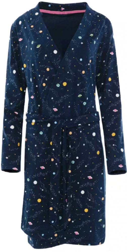 Dámský bavlněný župan Leptir 163/01 vyrobený z kvalitní bavlny. Moderní župan s kvalitní s jemným vzorovaným potiskem. Krátký elegantní dámský župan má délku nad kolena. Baleno v krabičce.