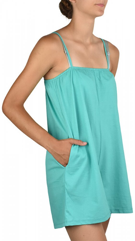 Dámský overal CHUBBY s tenkými nastavitelnými ramínky áčkového střihu. Nechybí ani dvě praktické boční kapsy. Díky příjemné bavlně je ideální do horkých letních dnů.