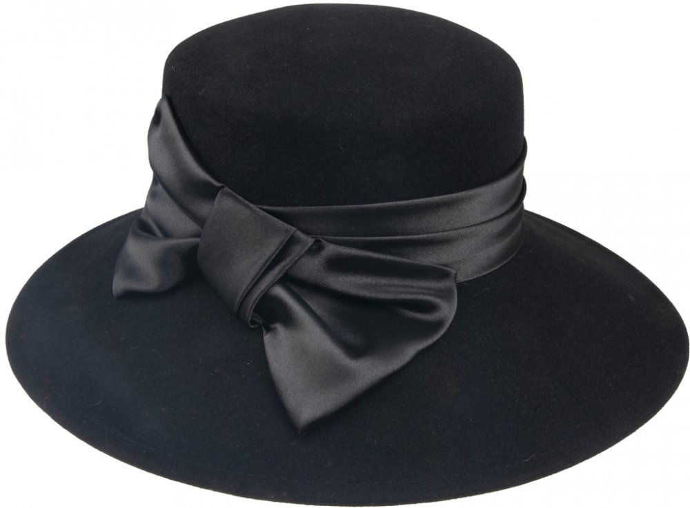 pDámský klobouk s pružným potním páskem. Klobouk je zdobený saténovou stuhou./p
