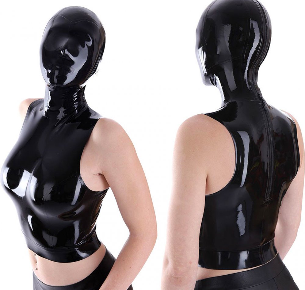 Naprosto originální vynález pro skutečné milovníky latexu. Sexy top dá vyniknout svůdným křivkám ženské hrudi a maska zajistí bizarní a anonymní vzhled. Maska vypadá, jako bez otvorů pro oči. V místech, kde jsou normálně otvory pro oči a nos, je drobná perforace, díky které přes masku vidíte a můžete bez omezení dýchat. To znamená, že se v tomto topu s maskou můžete volně a samostatně pohybovat, přestože si okolí myslí, že nic nevidíte.