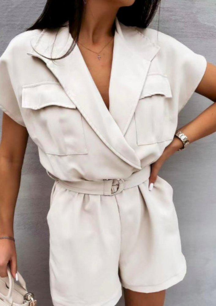 Dámský lehký bílý kraťasový overal s páskem Breeze