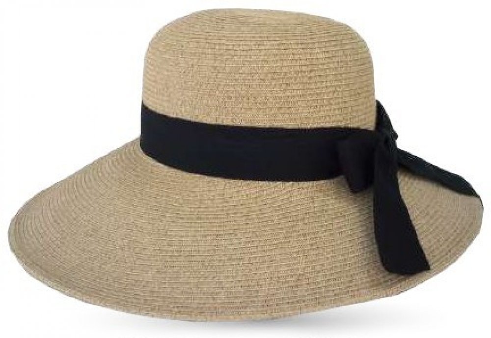 Dámský papírový klobouk zdobený stuhou sv. béžový melír