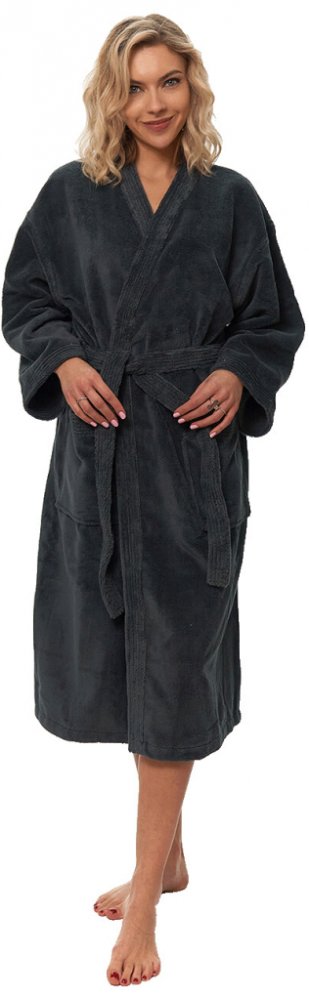 Dámský župan v elegantním střihu kimono spojuje pohodlí a funkčnost díky speciální kombinaci bavlněného froté a mikroplyše.