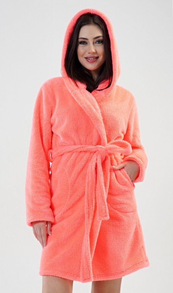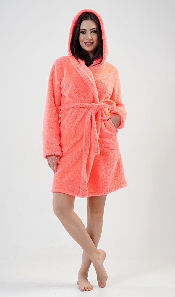 Dámský župan krátký s kapucí Grepfruit růžová