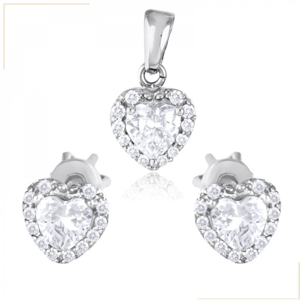 Nechte se okouzlit krásou velkého bílého zirkonu vybroušeného do tvaru srdce, který obklopují drobné bílé zirkony briliantového brusu. Skvostné bílé zlato dodává šperkům, ryzosti 14 karátů, svěží půvab. Zaručeně potěší každou ženu či dívku a mohou se stát okouzlujícím dárkem k narozeninám, Valentýnu, či dárkem z lásky.