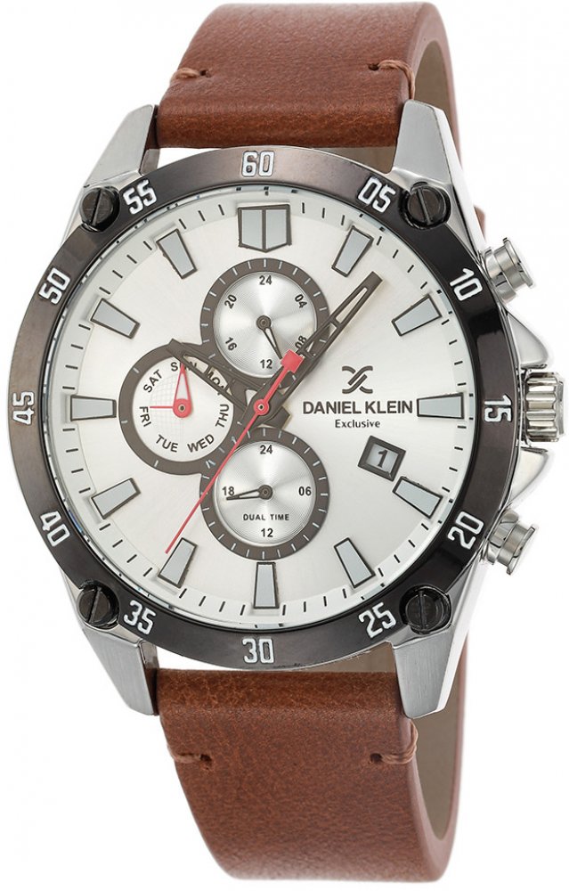 Pánské náramkové hodinky Daniel Klein.Hodinky mají multifunkčního ukazatele data, celých hodin a dne v týdnu, vteřinovou, minutovou a hodinovou ručku.Chod hodinek zajišťuje spolehlivý bateriový strojek.