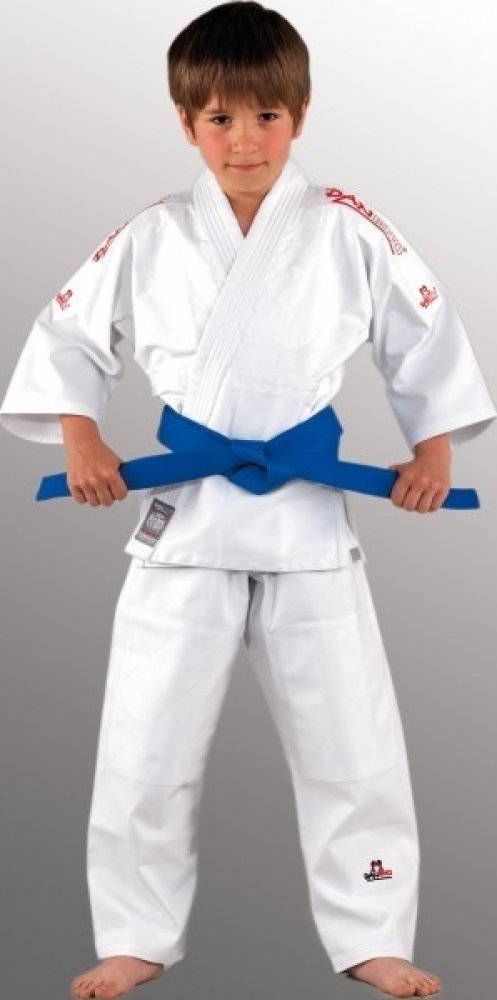 Kimono na Judo DANRHO O-GOSHI Lehké kimono je určené pro děti a začátečníky s gramáží 300 g/m². Je vyrobené ze 100% bavlny. Kalhoty mají elastický pas. Kabát má exkluzivní výšivku na ramenou. Kimono je dodáváno společně s bílým páskem. Určeno pro: žáky 5.kyu Dodání do 10 dnů !