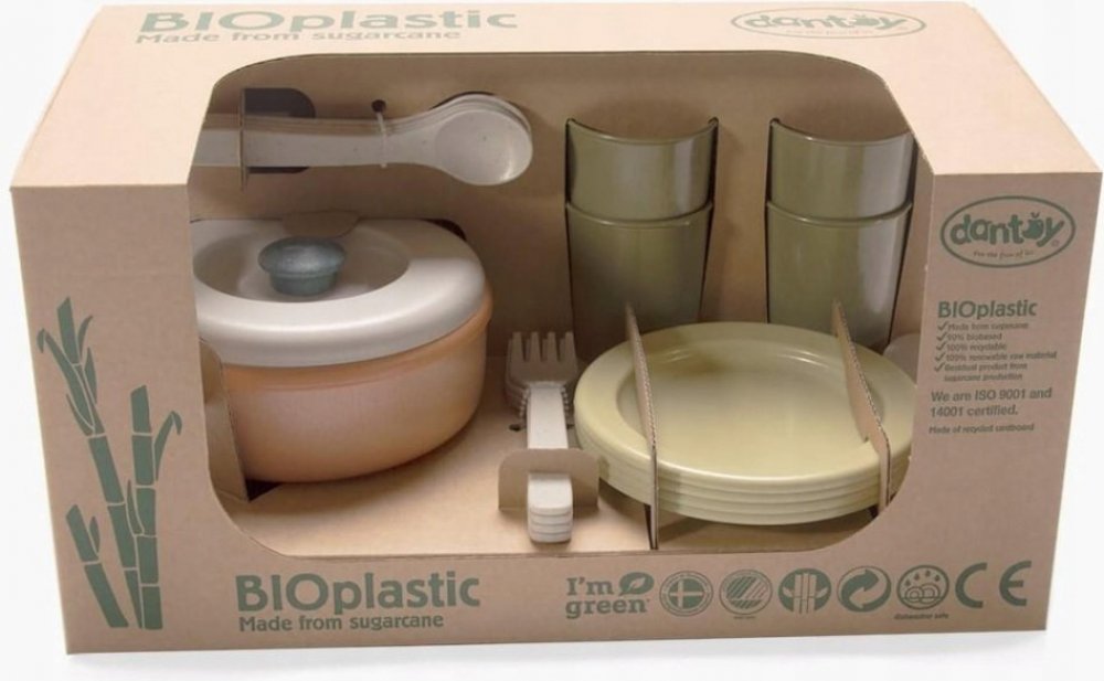 Jídelní sada v krásných trendy barvách, vyrobená z bioplastu. Vybízí ke hře a učení a je ideální pro vnitřní i venkovní použití. jídelní sada vyrobená z bioplastu - z cukrové třtiny souprava se skládá ze 22 dílů neobsahuje žádné toxické látky lze mýt v myčce na nádobí baleno v papírové krabičce, která je plně recyklovatelná rozměr balení: 34,5cm x 17,5cm x 19cm vhodné pro děti od 2 let vyrobeno v Dánsku 90% na biologické bázi 100% recyklovatelné 100% obnovitelná surovina