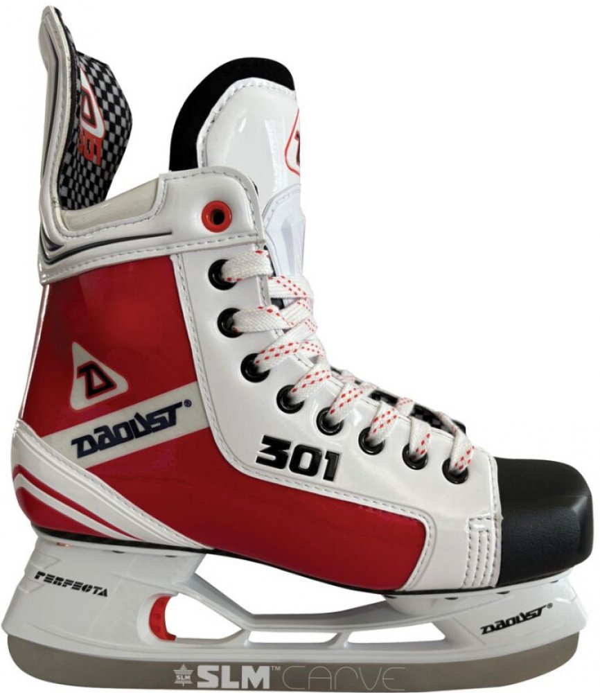 Brusle Daoust 301 Red přinášejí kombinaci moderní technologie a národního stylu s motivem české vlajky. Díky konstrukci z 40/60 kompozitního materiálu a systému Perfecta Kwik-1 Rapid Release Holder nabízejí stabilitu, přesný přenos energie a možnost rychlé výměny nože. Ideální pro hráče, kteří chtějí výkonnostní brusle s jedinečným designem a spolehlivostí značky Daoust.