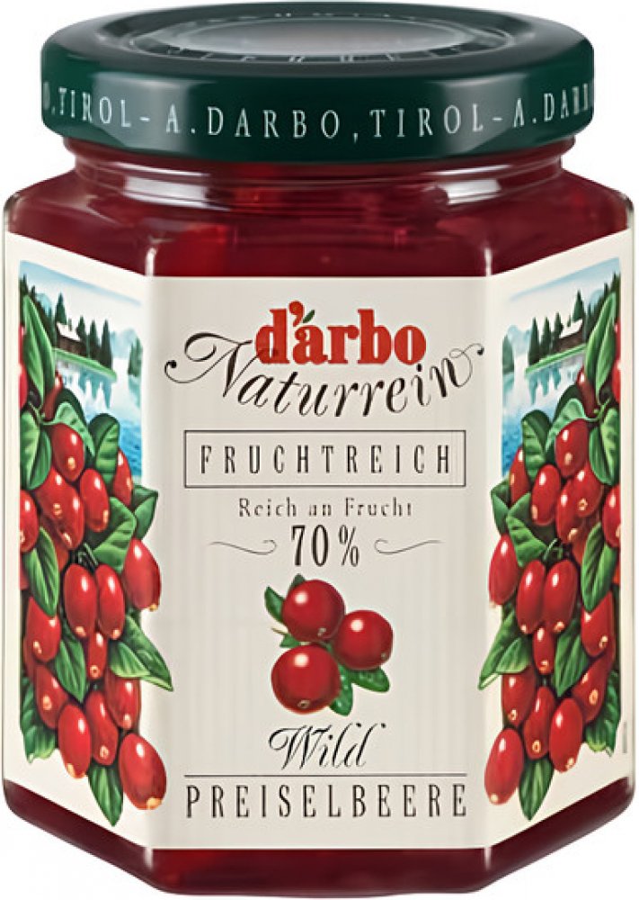 Cena se může v jednotlivých regionech lišit. -- Brusinková zavařenina. O výrobci Rodina Darbo začala s výrobou džemů, sirupů a ovocných likérů v roce 1879. Od tohoto roku si i přes dobové zvraty nepřetržitě předává zkušenosti a vylepšuje své dovednosti tak, aby rodinná firma mohla nerušeně pokračovat z generace na generaci, přesně tak, jak tomu bylo do dnes. Aktuálně patří mezi přední výrobce v Ra...