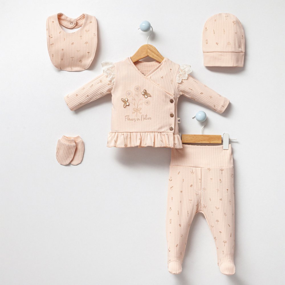 Kvalitní soupravička do porodnice ze 100% bavlny obsahuje (0-3 měsíce):
