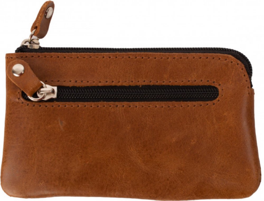 Kožená klíčenka se dvěma kapsičkami. V jedné, té větší, jsou na řetízkách kroužky pro přichycení klíčů. Klíčenka je vyrobena z pravé kůže světle hnědé barvy.