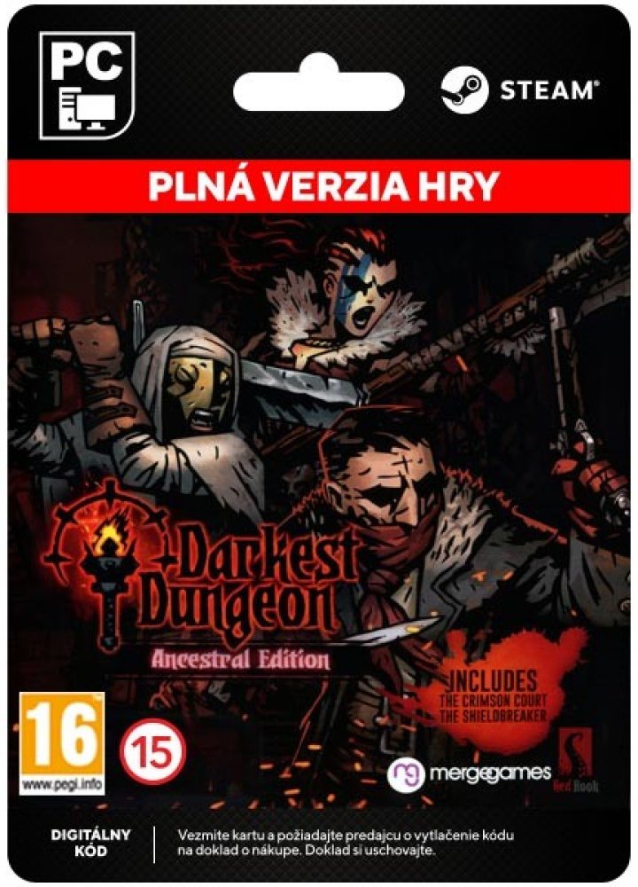 Darkest Dungeon Ancestral Edition obsahuje:, Hru Darkest Dungeon, The Crimson Court DLC, The Shieldbreaker DLC, Darkest Dungeon Soundtrack a Darkest Dungeon The Color Of Madness.