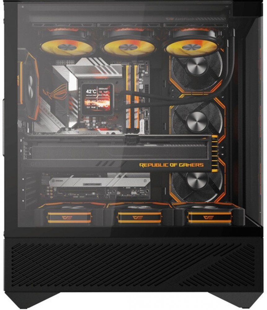 Skříň Darkflash DY460 vám umožní sestavit nejen výkonný, ale také skvěle vypadající počítač. Kombinuje panely z tvrzeného skla s vertikálním dvoukomorovým uspořádáním, takže můžete nainstalovat mnoho různých komponent a zajímavě je zobrazit. Model umožňuje zadní montáž vybraných základních desek, poskytuje prostor pro chladiče do 360 mm a má vestavěný port USB-C 3.2 Gen 2. Kompaktní rozměry (452 x 238 x 541 mm) skrývají prostorný oddíl, do kterého lze umístit grafickou kartu o délce až 400 mm a chladič procesoru o výšce až 185 mm. Kromě toho jsou součástí balení čtyři ventilátory ARGB.