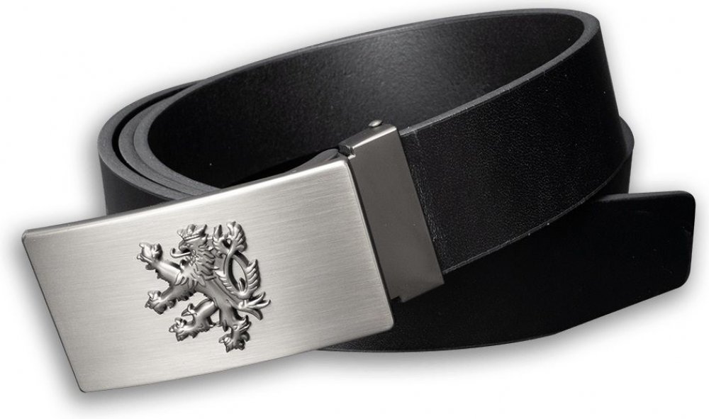 Nová, masivní kovová přezka obsahuje 3D motiv českého lva. Atraktivní vzhled podtrhuje luxusní povrchová úprava starostříbro (ruční patinace). Zubový mechanismus přezky umožňuje velmi snadné zkrácení koženého opasku podle potřeby zákazníka. Měření potřebného objemu v pase měřte VŽDY v místě, kde nosíte kalhoty (rozdíl objemu v pase a přes boky je značný).