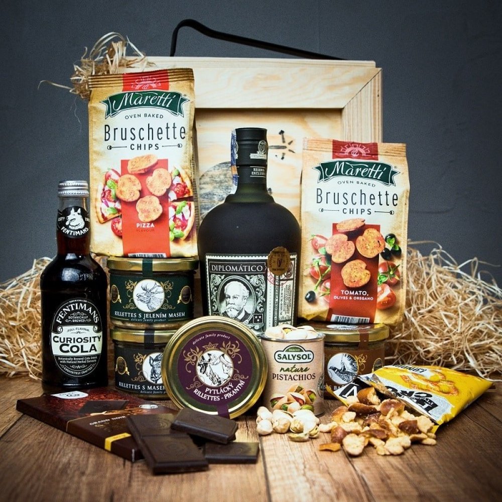 Obsahuje 12 položek DOPRAVA ZDARMA 1x Fentimans Curiosity cola 275ml, sklo 1x Čokoláda Sao Tomé 95% kakaa, 80g 1x Edeka rozinky s pravým jamajským rumem 125g 1x Snacks Salysol pistácie 36g 1x Rum Diplomatico Reserva Exclusive 12y, 700ml 1x Vineco - Pytlácký Rillettes - Pikantní 180g 1x Vineco - Rillettes s masem z divočáka 180g 1x Vineco - Rillettes s bažantím masem 180g 1x Vineco - Rillettes s je...