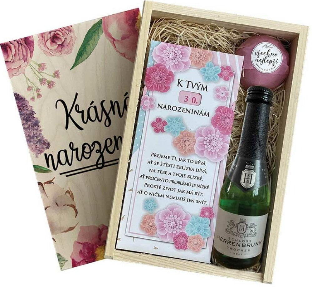 Malá narozeninová bedna je ideální dárek "tak akorát" pro ženy každého věku. Otočným kolečkem si můžete nastavit libovolný rok obdarovaného, takže můžete obdarovat jak mladou paní tak i dámu v nejlepších letech.