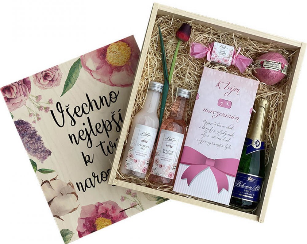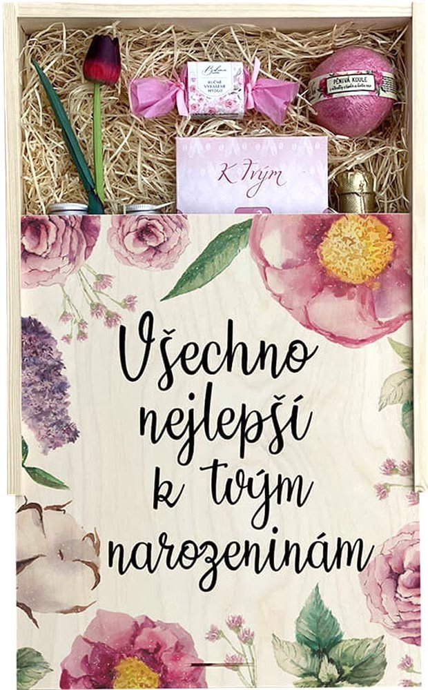 dárková dřevěná bedna k narozeninám pro ženy velká