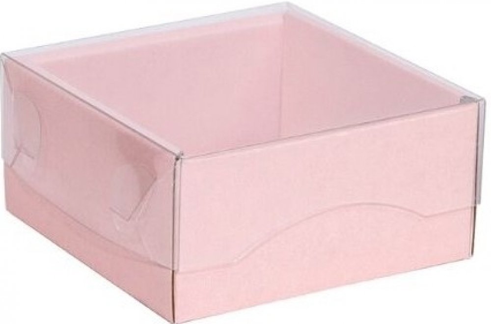 Dárková krabice s průhledným víkem 100x100x50 mm, růžová