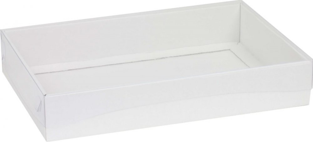 Dárková krabice s průhledným víkem 300x200x50/35 mm, bílá