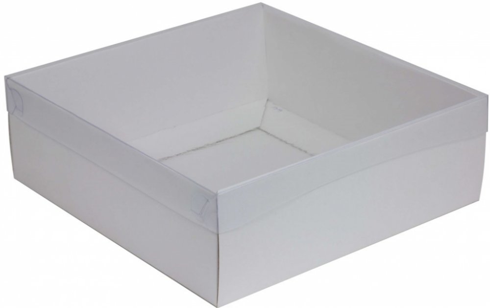 Dárková krabice s průhledným víkem 300x300x100/35 mm, bílá