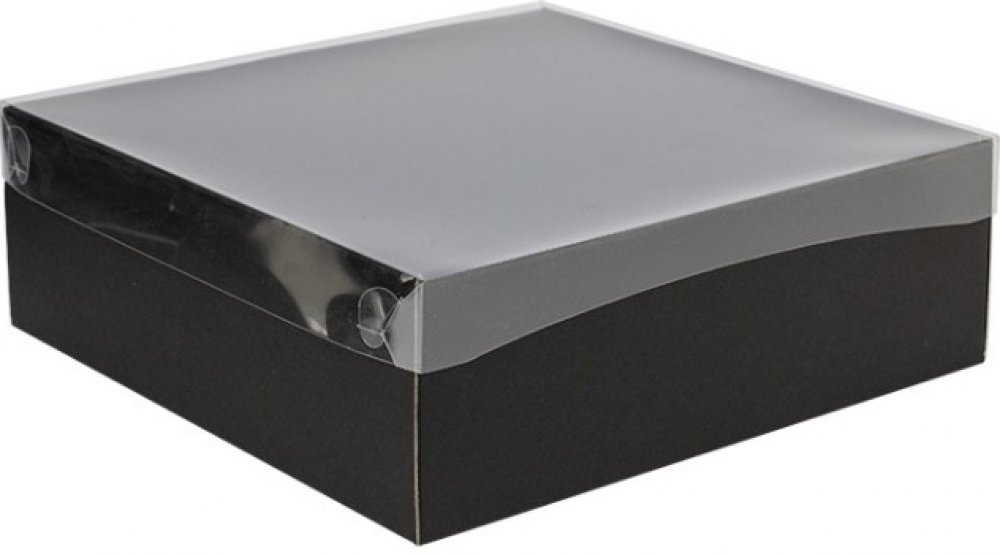Dárková krabice s průhledným víkem 300x300x100 mm, černá